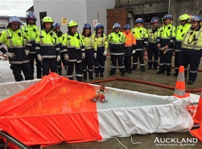 Fire and Emergency has a rigorous regime of on-going competency for all personnel and once a year our members attend a "skills refresher" programme at the Regional Training Centre, Mt Wellington. These practical exercises back up our regular monthly learning sessions. Traffic management, point duty, waterway equipment, lighting and portable pumping were topics this year, a full day's programme with our members joined by Operational Support personnel from Silverdale, Muriwai, Helensville, Matakana and Warkworth.