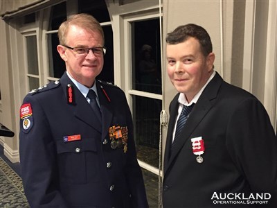 The Brigade honoured former-member Anthony Sampson at last night's annual honours evening. Chief Fire Officer Glenn Teal announced that Brigade members unanimously supported Anthony being made a Brigade Life Member for his service. Anthony retired earlier this year for health reasons. "This recognises your help over the years at the scenes of emergencies," Glenn Teal said, "and latterly as an radio operator on the Brigade's channel, updating information on our website and as Minute Secretary... all achievements which we did not want to go without suitable acknowledgement. This award, with its medal, is our thanks". Anthony had no inkling that the award was being made. After a standing ovation from his fellows he thanked the Brigade for "the most unexpected gesture". Anthony joined our Brigade some 11 years ago with a break when he served in the Blenheim Volunteer Fire Brigade. He is a fire-buff, a follower of all things "fire", with a particular interest keeping tabs on the national fleet of fire appliances.