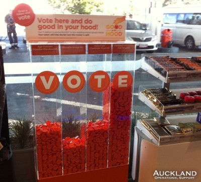 document.write("The winner is.... Us! Today's the last day for the Z Service Stations' annual \"Good in the Hood\" promotion, and our brigade is streets ahead in the voting at Skyway Service Station, Auckland International Airport. Customers were given tokens with which they voted for 4 participating neighbourhood groups. And, on the last day, tokens for the Auckland Volunteer Fire Brigade all but overflowed, such was the support. Z gives a donation to each of the worthy groups proportionate to the voting.\"The high esteem the public has for the fire service is, without a doubt, reflected in this overwhelming support\", says Chief Fire Officer Glenn Teal \"and now we are thankful that through this Z promotion our brigade will benefit\".