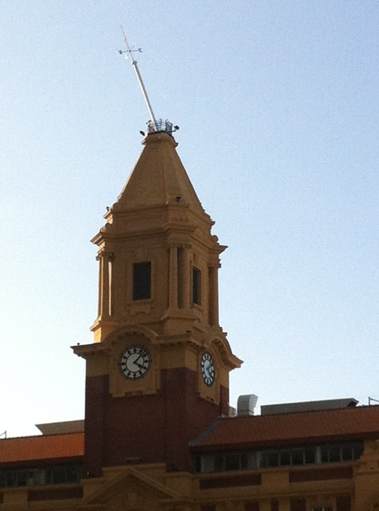 + to close Quay Street in the city where high winds threatened to blow down the flag pole from the top of the Ferry Building
