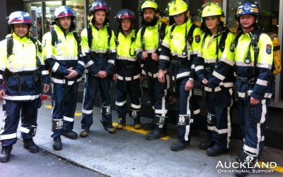 document.write("Two firefighters from New York and visitors from several Australian brigades joined New Zealand fire-fighters today in downtown Auckland this afternoon to honour counterparts who have died in the execution of their duty. The event remembers, particularly, those emergency services' personnel who died in the series of tragedies on 11th September 2001 in USA, and those 56 fellow New Zealand fire-fighters who have died in the line of duty. SSO Bay, as Anglican Bishop of Auckland, officiated at the ceremony with prayers for those who gave their lives, and for firefighters everywhere. Eight members participated in the stair climb, others provided event traffic management and scene protection.