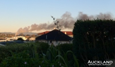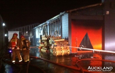 document.write("By sheer coincidence this morning's fire in Penrose mirrored, almost exactly, the blaze attended 24 hours before. Both involved commercial premises, they were situated in the Penrose/Te Papapa industrial area, both involving cavernous structures - each with confined interior fires which produced copious quantities of smoke. Today's blaze involved a paper processing facility: yesterday's was a palm kernel storage plant. Both calls were in the small hours, both escalated to third alarms and both premises were in cul-de-sacs. Smoke extraction became a focus from both buildings when the seat of the fire had been dealt-to. Some of our members from this morning's call were excused duty early-on to enable attendance at Anzac Day Dawn Parades.