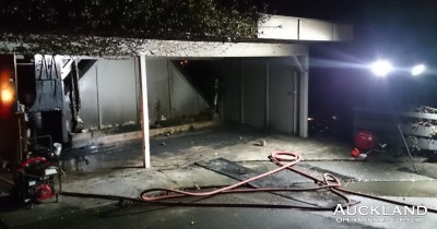 "); document.write(""); document.write(""); document.write("Last night's 3rd alarm call-out was in response to reports of an explosion and then a large fire showing up in the industrial area at Glendene, in Auckland's western suburbs. Firefighters thought a factory or a warehouse was alight but once they accessed the flames down long driveways they found it was a house surrounded by commercial premises, probably the only accommodation in the industrial area. Firefighters believe the fire was triggered by an exploding gas bottle inside the house. All the occupants, including children, made their escape. Members were deployed on a full suite of support duties ... all tasks except salvage: the gutted house was cordoned, subject to examination by fire investigators. "); document.write("