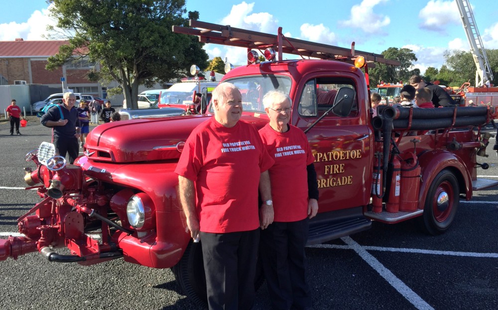 "); document.write("It was spit-and-polish and brass helmets this morning in Old Papatoetoe for the first ever Fire Truck Muster. After parading through local streets some 25 fire appliances, old and new, were on show in the Tavern Lane Car Park. They were a crowd pleaser, particularly the aerial appliances raised aloft. The event, which is hoped to become annual, is organised by Papatoetoe Community Ex-Firefighters Charitable Trust, a group with its headquarters at the old Fire Station in St George Street and comprising some members of the former Papatoetoe Volunteer Fire brigade, established in 1959. One of its first 2 appliances, a 1956 Ford V8, was in today's parade. Our brigade assisted organisers with traffic control and marshalling. "); document.write("