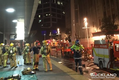 "); document.write("The Third Alarm in downtown Auckland caused problems for Sky City when the main access road to both its Grand Hotel and Casino was blocked by Fire Service operations. Multiple calls, prompted by thick brown smoke pouring from the top of Federal House, originated from a blaze in kitchen ducting in Federal Street Deli. Fire appliances, hoses and equipment soon blocked Federal Street, the one-way street and sole access to Sky City. Diners were forced to leave nearby restaurants and hundreds of office workers were evacuated from surrounding buildings as a precaution - these crowds and extensive traffic management in the busy downtown streets kept our members busy. Sky City casino provided security staff to help with pedestrian control. Fortunately, operations wound down and surrounding streets were restored to normal before the evening traffic hours began. "); document.write("