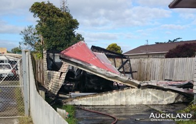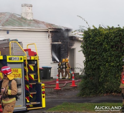 "); document.write("A Mt Albert house was left racked by flames this morning after fire swept through the art-deco residence in Raurangi Road on the slopes of Owairaka. Firefighters from 4 appliances worked to extinguish the blaze which also destroyed a car in the basement garage. The distinctive house featured in the 1990 movie \"Ruby and Rata\", a comedy, which ironically included in the cast wayward 8 year old, Willie, portrayed as a child fire-lighter. Members provided scene protection during the house fire, the second call the Brigade responded to overnight: the other was a long-duration job at an incident in Ash Street, Avondale, where an elderly local woman pedestrian died at the scene after being struck by a car. Operational Support personnel closed the busy arterial route during the emergency and while police carried out scene investigations "); document.write("