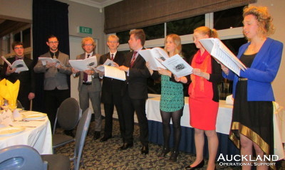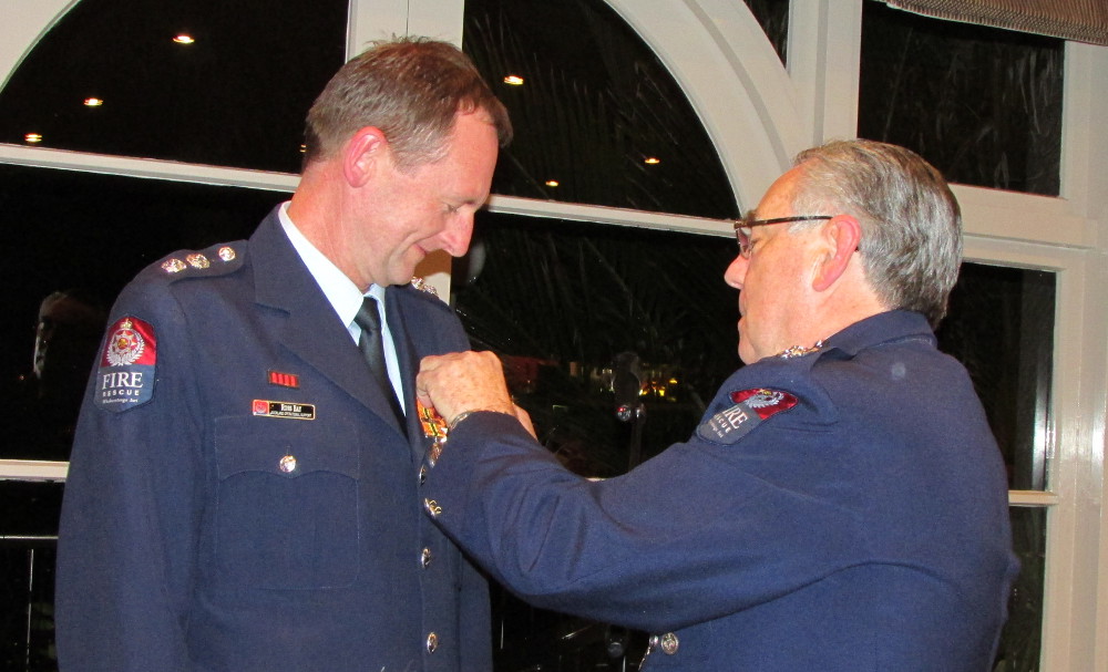 Senior Station Officer Ross Bay was last night presented with the United Fire Brigades' Association Gold Star recognising 25 years' contribution to the fire service and the community. Ross, who's also Anglican Bishop of Auckland, received his award at a ceremony attended by senior Fire Service executives, Fire Brigade Associations together with his wife, Jacquie, and friends. There was a neat link with the church when singers from Holy Trinity Cathedral set the evening off with a bracket of songs. Ross is the 25th member of the brigade to receive a Gold Star since the then Fire Police Unit was formed in 1933