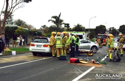 "); document.write("This afternoon's crash in East Tamaki between a bus and a van turned out to be an extended job with members assisting with road blocks to close Kilkenny Drive. Firefighters extricated one occupant trapped in the wreckage of the van after the head-on collision. The police Serious Crash Unit is investigating the cause. "); document.write("