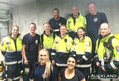 "); document.write("The day began with attendance at a second alarm fire in the Chorus Building on Auckland's North Shore, closely followed by a call to a motor vehicle crash in Remuera. A station wagon brought down a power pole and wires, and in the crash a quantity of white paint got loose from inside the vehicle, coating Orakei Road. Members put in road blocks for several hours until traffic management contractors took over. This afternoon there was a call to a chemical fire at the Ports of Auckland and just as this was winding down the OSU crew was released to attend a serious car accident on the Whitford/Maraetai Road. Again, members put in road blocks while the main highway was closed for several hours. "); document.write("