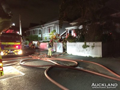 "); document.write("Today's early morning 3rd Alarm response to Brown Street, Ponsonby, has left an elderly woman dead, along with a number of her small dogs. Her house was badly damaged by the blaze. Firefighters from nearby Ponsonby Station were first on the scene - they found the house already engulfed in fire and spreading to the next door neighbour's. After what a fire officer describes as a \"gruelling search\" through the smoke-filled house, firefighters found the woman's body and a number of dead dogs. Our members were kept busy at the scene with traffic and scene management, lighting, command point and general fireground duties. Members also responded in the mobile canteen to provide on-site refreshments at the long-duration event. It was the second serious fire attended overnight. The other was in Mangere East, a blaze in one of a three-unit Housing New Zealand block on Massey Road. At this call it was also thought persons may still be in the burning building but fears were unfounded: the family arrived on the scene soon after to find their home badly damaged. "); document.write("