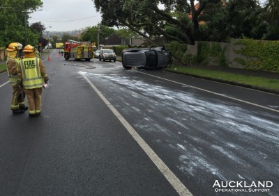 On Saturday night the Brigade was called to a multi-vehicle crash on Mt Albert Road. Although it was one accident, members dealt with two \"incident scenes\" because damaged cars were some 200m apart. Sunday, and members responded to Tuakau where thousands of litres of motor oil spilled from a road tanker. (See other news item).