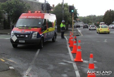 "); document.write(""); document.write(""); document.write("The Brigade responded to 3 incidents yesterday: the last ending in the early hours of this morning. Tasks included traffic management - road closures - at two of Auckland's busiest and biggest intersections. The first was a mid-afternoon call to Mt Roskill where the fire-fighters were dealing with a hazardous substance, summoned by police who suspected a drug lab in the boot of a car they had stopped. Dominion Road, used by commuters and a route to and from the motorway, was closed at Mt Albert Road, itself a major arterial route. The closure and diversions continued throughout the evening peak hour. Then mid-evening, members turned out to another major road, Universal Drive, Lincoln North, where there was a fatal accident involving a cyclist. A road block was put in at the sprawling Lincoln Road intersection, surrounding streets were closed and exits blocked from numerous car parks in the vicinity. During this call other members responded to Unsworth Heights on the North Shore where a car collided with a tree, trapping two occupants and triggering a serious crash investigation. "); document.write("