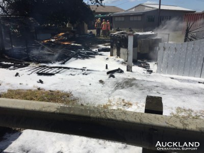 document.write("Part of Favona, a south Auckland suburb, took on a White Christmas look by the time firefighters got the better of a transformer blaze on Favona Road. A shed fire on private property spread to the electricity transformer and the blaze escalated when oil coolant caught alight. Extinguishing it had to await advice from Vector, after which firefighters fought the fierce fire using 2 foam branches. They left a carpet of snow-like foam. Meanwhile, busy Favona Road was closed for several hours. Earlier in the day there was a call-out to a crash involving five cars on Onehunga Mall, the result of a police chase through Mt Albert, Mt Roskill and Onehunga streets. At both incidents members provided support services including closing roads: it was the same later in the day at a motor accident at Takanini where power lines had been brought down.