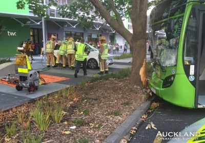 "); document.write("Members responded to 5 calls today, and varied at that. The first was to a gas leak in Otara where a digger had clashed with a gas main. Within the hour there was call to suspicious white powder in premises at Avondale. And just before lunchtime the brigade was paged to a spillage of the chemical phenol in a medical centre at Milford. Nine people were affected, decontaminated and treated at the scene, though some were taken to hospital. Members assisted with cordons and traffic management. Mid-afternoon members were on their way to a fire in a mobile crane at Wiri. Flames also damaged an adjacent truck. And call number 5 for the day, paged just after 7pm was to a motor accident at the downtown intersection of Beach Road and Anzac Avenue. A bus had crashed into a tree. A car, also involved in the crash, ended up on the footpath. One occupant was trapped in the car and had to be freed by firefighters. Members provided traffic management at the busy intersection until the person was freed and transported to hospital and the bus and the car salvaged, operations taking about 2 hours. "); document.write("