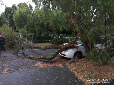 "); document.write("This morning's early callout was to assist with traffic management at a fallen tree in Peary Road, Mt Eden. A big limb had given way, the branch and foliage falling on a parked car and blocking the carriageway. Members closed the road until arborists responded to clear the road. One resident pointed out it must have been caused by the weight of rainwater on the tree since there had been no wind overnight. \"The trees along this road are getting old. They're an Australian species. Um, come to think of it, wonder if this is retribution for that convincing win by the Black Caps?\" "); document.write("