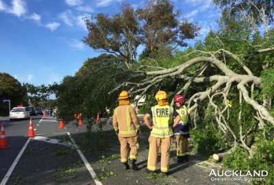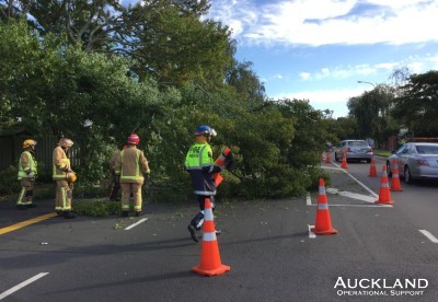 "); document.write("An aging tree collapsed this morning, with limbs and branches blocking lanes across busy Pah Road, Epsom. Members managed traffic around the obstruction using one lane, Stop/Go operations, in efforts to keep flows moving. Meanwhile firefighters took to the fallen tree with a chainsaw, making the scene safe and, eventually, allowing the second lane to be opened. Arborists took over remedial tree-work. "); document.write("
