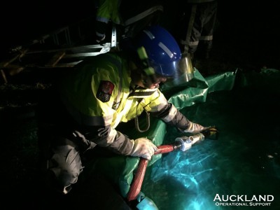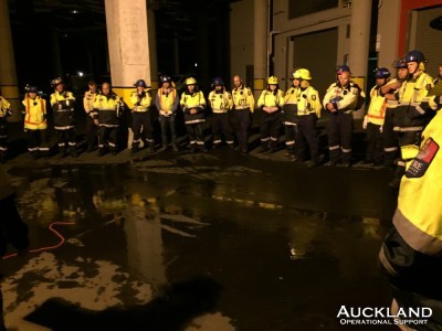 Members' training took them to Patumahoe, South Auckland, last night. In contrast to usually working in the well-lit metropolitan area, members faced various scenarios in the pitch black of rural farmland. This meant every operation had to be lit, for their personal safety and so that they could safely undertake operations. Scenarios included hazard recognition and mitigation, lighting, making portable dams and operating the ablutions trailer.
