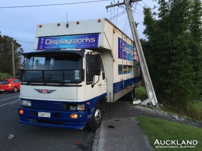 "); document.write("Today's early morning crash in Mt Roskill involved two heavy trucks, a power pole and a car, closing Richardson Road for hours. It was a kind of chain reaction when one truck collided with another, which in turn impacted, and smashed, a power pole and was also shunted into a parked car. High tension power wires were dislodged - savage operations could not begin until electricity was isolated and the damaged power pole made safe. Members provided initial cordons, later taken over by traffic management companies who diverted traffic through the morning peak-hour. The driver of the truck escaped injury "); document.write("