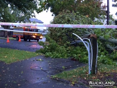 document.write("Early this morning there was a further callout, the result of the stormy conditions, when a tree blew over in Pt Chevalier, taking with it a power pole and live wires. And it was much the same at Randwick Park in South Auckland where a pole, with lines attached fell down across Porchester Road; members were able to lift cordons on the arterial route just before the morning traffic peaked. There were calls to power lines down in Penrose, in Freemans Bay and, later at Waitakere: cordons were maintained at all three events until power lines were made safe by linemen. Meanwhile there was a response to Ponsonby to a ruptured gas main in John Street and to a serious motor vehicle accident on State Highway 16 at Kumeu. A call, mid-afternoon, to a motor accident at Papatoetoe ended the busy sequence of calls. In 24 hours ended 6 o'clock tonight we have turned out 14 times to assist at various types of emergencies.