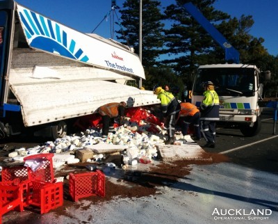 "); document.write("Members were involved in a long-duration job on Te Atatu Road this morning following a collision about 5am between a car and a milk delivery truck on a bend near the Roberts Road shops. The driver of the car died at the scene. Our brigade assisted with lighting, illuminating the scene while the driver was extricated by firefighters. We also assisted with crowd control and traffic management - the road was closed while police investigated the cause of the accident. Other members took the mobile canteen to the scene so breakfast could be served to emergency workers. Then came the clean-up of hundreds of milk bottles, some ruptured, plus dozens of milk crates that had fallen from the upturned delivery truck. "); document.write("