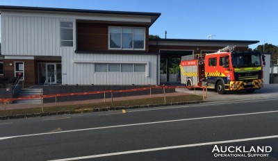 document.write("After a quiet holiday weekend, there were 3 calls at once to end Auckland's Anniversary Day.The first, late afternoon, was a turnout to a second alarm house fire at Long Bay on the North Shore. A two-storey house on the waterfront, was well alight when first firefighters arrived... they were handicapped by a lack of good water supplies. Members, joined by Silverdale colleagues, managed traffic... first the emergency vehicles accessing Long Bay Reserve, then hundreds of vehicles as they exited the car parks. The second call was to a motor vehicle accident on Scenic Drive, Waiatarua, where a car lost control on a bend and took out a guard rail, the end of which impaled the windscreen. Members closed the road while the victims were being treated and the vehicle salvaged. At the same time there was a second alarm fire in the former Valentine's restaurant in Manukau City. Both fires are being treated as suspicious. A total of 34 members responded to these incidents... a few managed to attend two: as the Long Bay event was winding down some travelled to either Waiatarua or Manukau City.