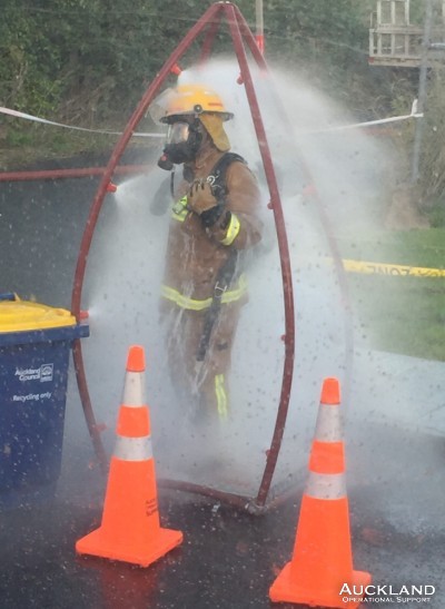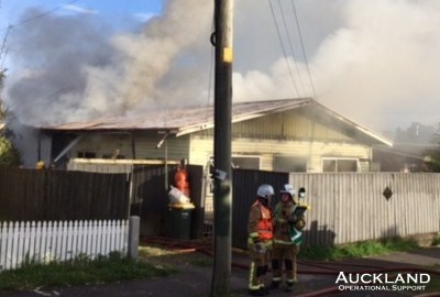 "); document.write("This morning's house fire in New Lynn was the second within 24 hours suspected of being connected with drugs. Today's call escalated to a third alarm when the house and its extensions at the rear exploded and caught fire. Firefighters were decontaminated on site - much the same as at last night's call in Milford where firefighters and a dog went through cleansing showers. At both calls members closed surrounding roads, provided scene protection and refreshments. At the same time as last night's Milford blaze our members were at three other fires... at a restaurant in New Lynn, a vehicle fire in Otahuhu and a house fire at Weymouth. "); document.write("