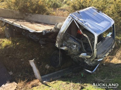 "); document.write("The second incident blocked State Highway 16 at Waimauku for several hours. Witnesses said it was a head-on crash leaving a car in the middle of the road with its occupants trapped and the truck some distance for the point of impact. It jumped a ditch and came to rest on an embankment beside the railway line, losing its front wheels in the process. Members provided traffic management until police completed investigations and the road was cleared of wreckage, oil and debris. "); document.write("