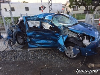 "); document.write("Members responded to the Morningside Road railway level crossing late this afternoon when a west-bound passenger train hit a car. The driver, the only occupant, was trapped in the car which became wedged between the train and a fence adjacent to Morningside Drive. Firefighters extricated the woman from the wreckage and she was taken to hospital with serious injuries. Members closed Morningside Drive so there was no access from either New North Road or St Lukes Road until accident investigations were concluded and the scene made safe. The Western commuter line also remained closed over the evening peak hour. "); document.write("