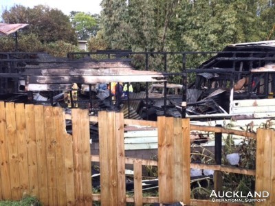 "); document.write("Flames swept through the shelter shed/grandstand at the netball and tennis courts at Windmill Road Park in Mt Eden this afternoon. The 25 meter-long wooden structure was well alight when firefighters arrived and they transmitted a second alarm call for assistance. The building was gutted, but is left standing. Firefighters made a good save of the adjoining two-storeyed clubrooms and changing facilities, cutting off the flames as they were driven towards the building by a stiff breeze. Fire investigators and detectives were called in to try to find the cause of the blaze. Our members closed Windmill Road and provided scene protection. Our brigade has also attended 3 motor vehicle accidents today... in Orakei, Glenfield and Takanini. "); document.write("