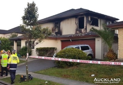 "); document.write("Six people were in a house in Plantation Avenue, Flat Bush, about half past three this morning when according to neighbours it burst into flame with a fire ball. Three members of the family died in the fire, three others were taken to hospital: one an 11 year old girl, one a 47 year old man. Neighbours also told news media there was screaming and noise of breaking glass as the fire ripped through the ground floor and spread to upstairs. Fire Service Commander Larry Cocker says a youngster managed to escape the flames and advise firefighters that the others were still in the burning house. Members assisted with traffic management and scene safety... and also responded in the mobile canteen. Fire investigators and police are determining the cause. "); document.write("