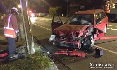 "); document.write("Those involved in today's early morning crash in Gillies Avenue, Epsom, had a lucky escape, judging by the damage to both the car and the station wagon which had collided at the Epsom Avenue intersection. Altogether 4 vehicles were involved... two parked cars in Epsom Avenue had been sideswiped before the crash at the intersection. The driver of one the vehicles escaped with scratches while the other fled the scene. After impact the car involved slammed into a traffic light standard. The station wagon came to rest on top of the car. Members provide traffic management, closing Gillies Avenue while police completed investigations and until both vehicles were removed. And within 24 hours, a similar event - a two car crash at a light-controlled intersection, both vehicles mangled but no serious injury. The second crash occurred at the intersection of Great North and Sabulite Roads, Glen Eden. The vehicles ricocheted on impact, ending up 50m apart. "); document.write("