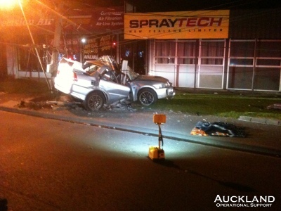 Members were engaged for more than 6 hours at a fatal motor vehicle accident this morning in Neilson Street, Te Papapa. A car collided with a power pole just after 2am bringing down high-tension lines which became wrapped around the vehicle. Rescuers could not approach the car until the electricity had been cut off. Once linemen isolated power to the area ambulancemen could move in, followed by firefighters who cut the body from the wreckage. Members remained on the scene, closing Neilson Street while these activities, and police investigations into the accident, were carried out.