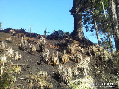 Despite a total fire ban in greater Auckland, the long dry spell has spawned many grass, scrub and bush fires. Our brigade was called to assist at 2 of the more serious incidents last evening. The first in the South Auckland suburb of Clendon Park quickly spread through scrub and toe-toe bushes threatening several houses in its path. During the 3 hour fire-fighting operation Members engaged in traffic management, refreshments from the canteen and command unit duties. Meanwhile a second unit was despatched to a scrub fire at Snell
