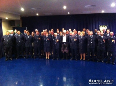 The Brigade is marking a major milestone - 80 years of service to the community. The special guest at last night's anniversary dinner, Chairman of the New Zealand Fire Service Commission, Rt Hon Wyatt Creech, said that as he moves around the country he continues to be impressed with the extraordinary contribution made by volunteer fire brigades such as ours. "I'm pleased to be here with you, our biggest volunteer unit,to help celebrate your 80th birthday". Auckland Metropolitan Fire Police Corps was founded when 12 constables were sworn in to act alongside the Fire Brigade at major blazes. In their first year they responded to only a handful of fire calls, all within the CBD and inner suburbs, in their own cars, hitching a ride with friends or travelling on public transport. Today there are 60 members answering an average of 600 calls annually across a sprawling Greater Auckland deploying the Unit's urgent response vehicles. At last night's function Chief Fire Officer Glenn Teal said that it is remarkable these days for an organisation to endure and thrive for 80 years, still providing meaningful, value-added, services to the community. "And", he added, "the Brigade is in great heart to continue for a long time to come. We have a bright future".
