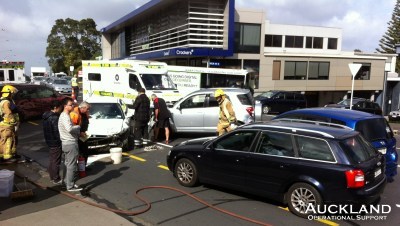 For the second morning in a row one of the main access routes to Auckland Airport was blocked today. Yesterday George Bolt Drive in Mangere was closed after a major accident. Today it was a much shorter closure in Manukau Road, Epsom, after 5 cars were involved in a collision near Onslow Road. No serious injuries were reported. Members maintained road blocks on Manukau Road while police made enquiries and until all the vehicles could be removed. Additional management was provided in The Drive to assist traffic traverse detours.