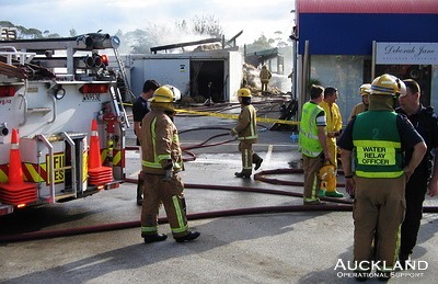 Members were called to assist, mid-afternoon, at a fierce fire in Strawberry Gardens and Ice Cream Parlour on State Highway 16, Kumeu. Fire Service attendance equalled a third alarm. The blaze was in a range of out-buildings and spread to hay. Auckland Fire Police, assisted by counterparts from Silverdale, maintained traffic management while a squad of road tankers and fire engines was involved in a shuttle service along the State Highway, fetching fire-fighting water supplies from Whenuapai. Traffic control was also required at the scene of the fire, allowing the tankers and fire engines immediate access in and out of the premises. Traffic management continued throughout the busy evening peak: a new roundabout at the Taupaki Road/Old North Road intersection with SH16 was used to restrict traffic passing the fire scene and to allow tankers an easier run to the blaze. Fire-fighters had to be decontaminated after hazardous materials were discovered on the site.