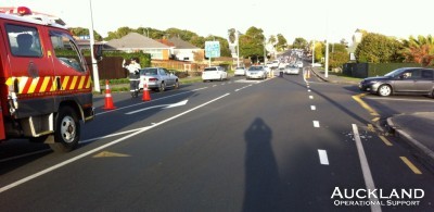 Members assisted at 2 motor vehicle accidents today: both were on Auckland's busiest roads. The first two-vehicle smash occurred this morning on the intersection of Blockhouse Bay Road and New North Road, almost outside the Avondale fire station. Five roads connect so traffic soon built up. Northbound flows on Blockhouse Bay Road had to be diverted for nearly an hour while the scene was restored to normal. Then, this afternoon's collision on Dominion Road caused this very busy road to be closed with detours put in place and sign-posted. Brigade members closed roads at 6 locations, including one of Auckland's busiest intersections, Mt Albert Road and Dominion Road, with extra point duty at May Road and Mt Albert Road because of altered flows around the area. Police investigated the scene as a serious crash incident: road closures remained in place for 3 and a half hours. This was one of the biggest urban traffic management tasks undertaken by members in recent years.