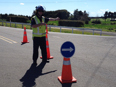 QFF Mark Foster directs traffic away from the scene of a fatal crash.