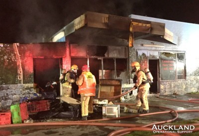 Members turned out early today to a 2nd Alarm fire call at a laundromat in O'Donnell Avenue, Mt Roskill. The fire badly damaged the building and destroyed washing machines and driers in one part of the premises: other machinery and fittings were damaged by heat and smoke. Firefighters had to access the roof void to snuff out last pockets of fire. It's the second laundromat fire in the district in recent weeks - the first in Sandringham was put down by fire investigators to spontaneous combustion caused by closely folded laundry stacked while warm. Investigators are looking into today's blaze. Members lit the premises and provided scene safety during firefighting operations.