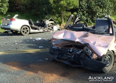 Members attended a motor vehicle accident on State Highway 16 north of Kumeu yesterday, mid-afternoon. The head-on collision between two cars resulted in multiple casualties including patients with severe injuries who were trapped in both vehicles. One occupant, once extricated by fire-fighters, was flown to hospital in the Westpac Rescue Helicopter. Our members assisted with road closures and scene protection - the mobile canteen attended the long-duration event. The Highway was closed for 3 hours while police undertook investigations, the vehicles salvaged and debris cleared.