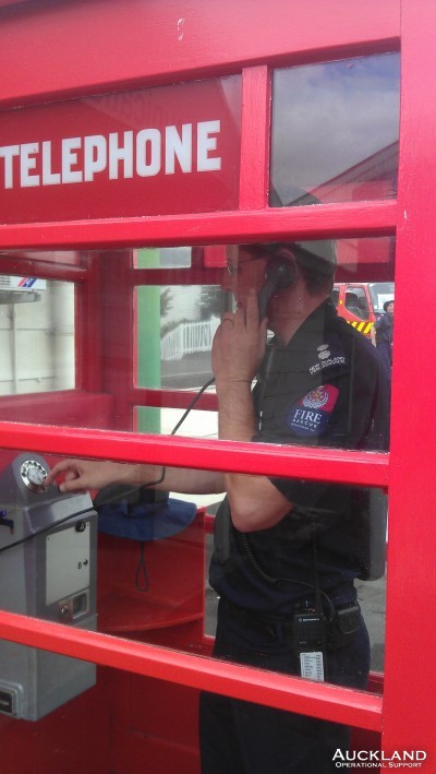 They were on hand to greet and assist members of the public, help with vehicle movements around the grounds and crowd safety at the kitchen fire demonstration. The venue's theatre was used to show visitors a slideshow of pictures from the brigade's time in Christchurch in the aftermath of the February earthquake.
