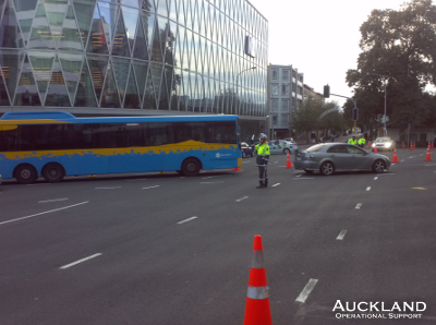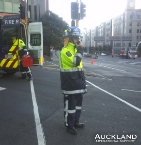Members have been busy today attending 2 Second Alarm incidents and a serious road crash. The crash, on Karaka Road, aka SH22, in South Auckland, engaged 6 members for 3 and a quarter hours in traffic management until contractors took over. Police required road closures while they investigated the accident. About the same time 12 other members were responding to a 2nd alarm downtown in Auckland City, a leak of chlorine at the Tepid Baths. Several blocks had to be closed to traffic: Operational Support members helped manage cordons, particularly the complex Nelson/Fanshaw/Sturdee Streets intersection, for more than 3 hours while firefighters worked to contain the spillage. Then in the evening the Brigade was out again to another 2nd Alarm, a garage fire in Flatbush, South Auckland. And just a flourish to end the weekend, a call early Monday morning to a road accident on busy Hillsborough Road. Members managed traffic until the debris was cleared... just in time before the morning commute.